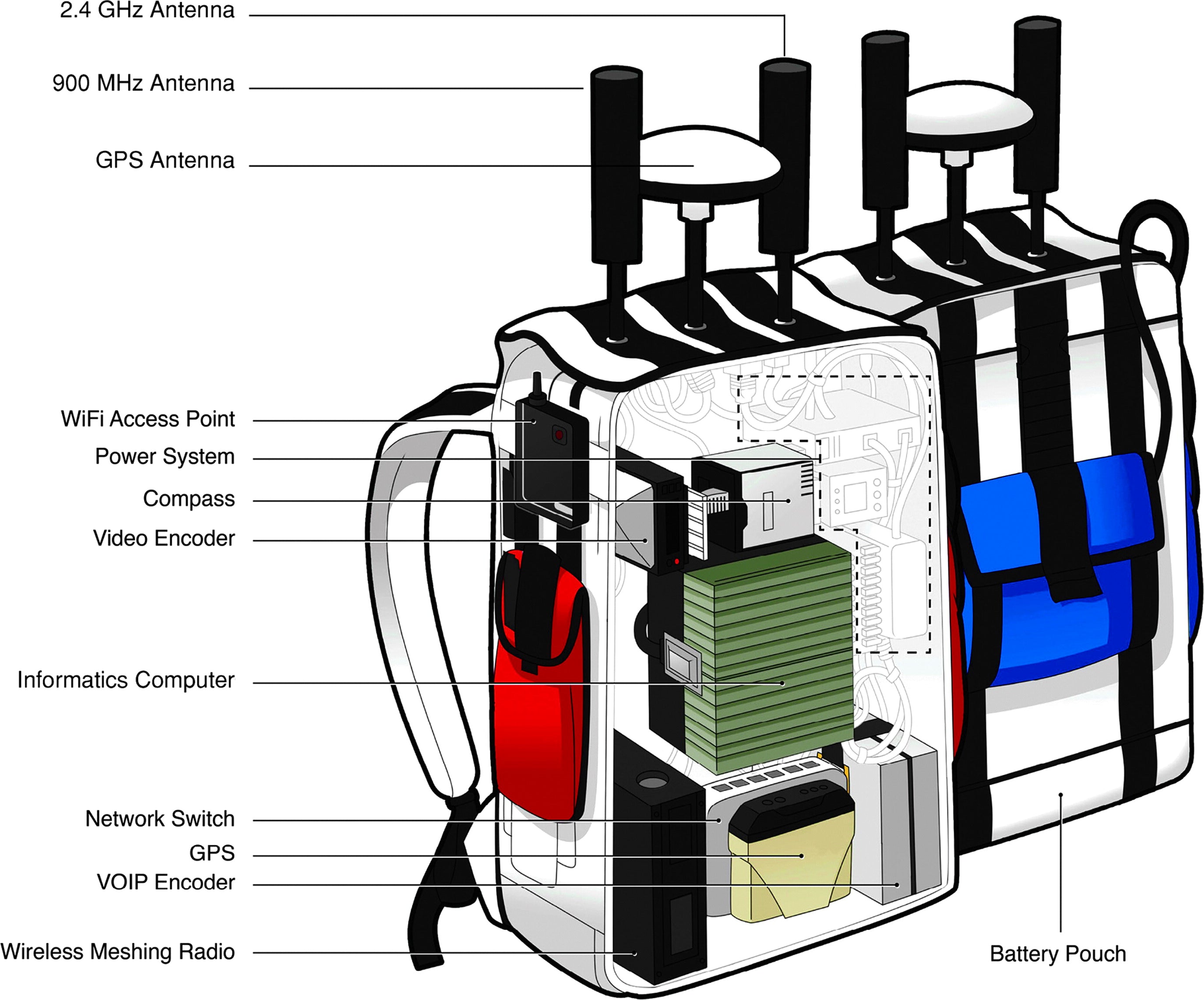 "The bags had to protect sensitive electronic equipment responsible for relaying BASALT-OnSight: an immersive, three-dimensional (3D), XR terrain modeling tool, HoloSkype: an AR technology that enables the drawing of virtual annotations on top of the real world by EV and IV crewmembers and facilitates real-time communication, and HoloSEXTANT: an AR capability that provides real-time navigation and path planning visualization overlaid on the physical world for EV crewmembers." (Abercromby et al., 2020)