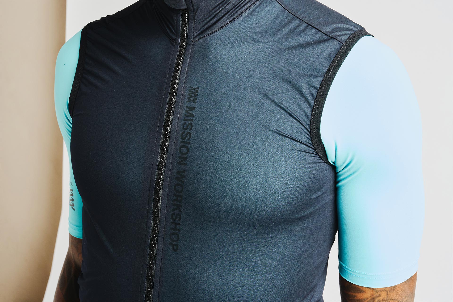 For the main body fabric, we landed on Zero Wind® by Pidigi. With 70 years of continual research and fabric innovation, Pidigi is a powerhouse, and the Italian made Zero Wind® fabric is close to perfect. Coming in at an absurdly light 53 gm/m2 this two-layer fabric is a formidable barrier against wind and rain. The smart membrane is both waterproof and hydrophilic so that sweat wicks away from the body but outside water is repelled and the more intense the physical activity the more breathable the membrane becomes. For improved water resistance, the shell is treated with BIO-WR Technology which is a non-fluorinated ecological DWR water and soil repellent.