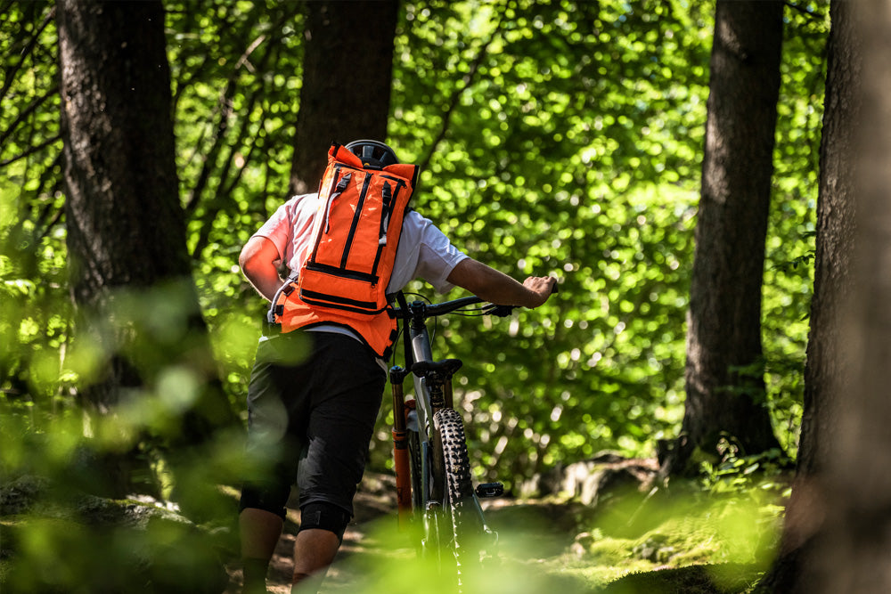 The hydration pack has a total of four weatherproof exterior pockets to provide easy access to gear, and the included tool-roll is fully removable and organizes all of the essentials. A series of external straps can be deployed to hold a helmet, pads or numerous other gear.