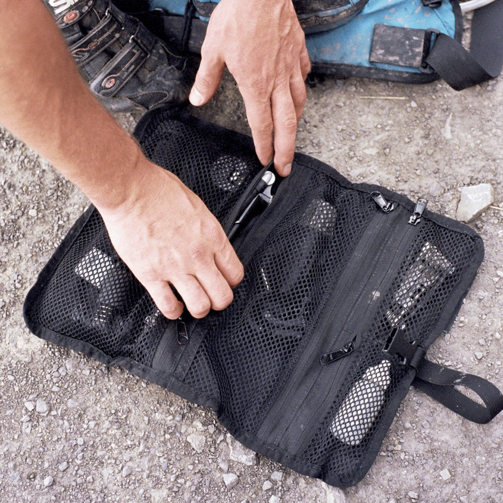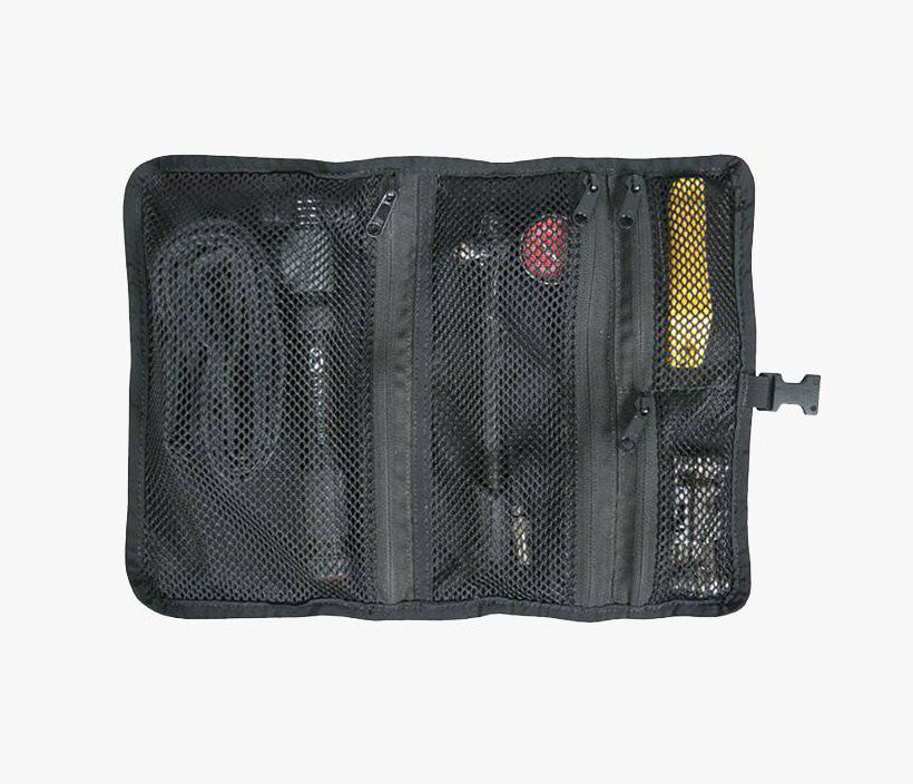 The Tool Roll keeps all of your essentials perfectly organized with four zippered mesh pockets of various sizes. It can be moved from one bag to another and easily opened flat to display your tools or daily tech items. The Tool Roll is made from XPAC VX21 or Cordura and utilizes YKK zippers throughout.