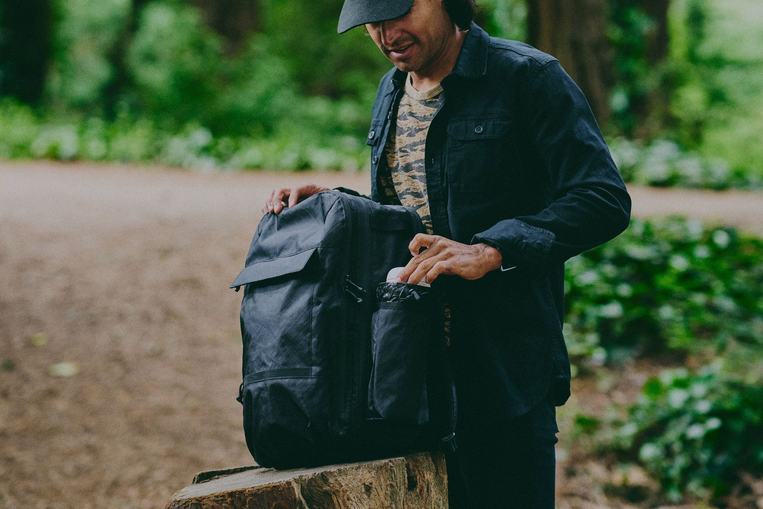 The LandSpeeder Bottle Pouch is featured on the new Meridian Backpack