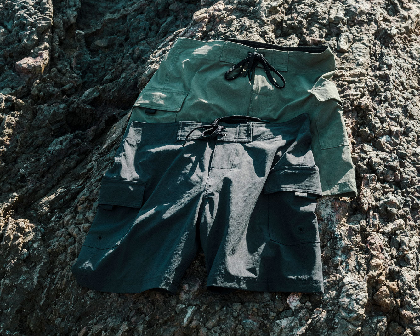 The Ocho : Grid is our classic board short made with an advanced stretch-woven ripstop nylon by Olmetex in Italy. The fabric has massive stretch yet retains its structure in all conditions and features a PFC Free DWR to facilitate rapid drying when out of the water.