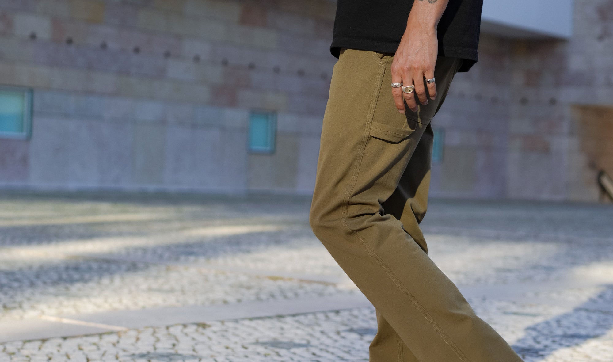 The Paragon is our take on the classic chore pant. Made in New York from the same 4-way stretch fabric as the Mission Jean and cut with a relaxed fit and wider leg for increased mobility. This advanced fabric was developed for Mission Workshop by Mectex M.I.S. at their mill in Como Italy and achieves its extreme stretch without sacrificing durability or structure.
