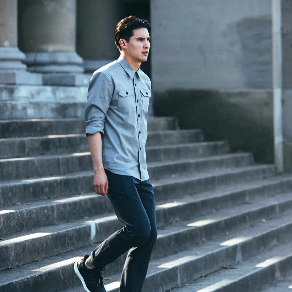 This button-up version of our classic overshirt is made in a new Japanese stretch-cotton fabric and features Italian button closures rather than snaps. We’ve lightened the overall weight and pre-washed the fabric for a perfect fit.