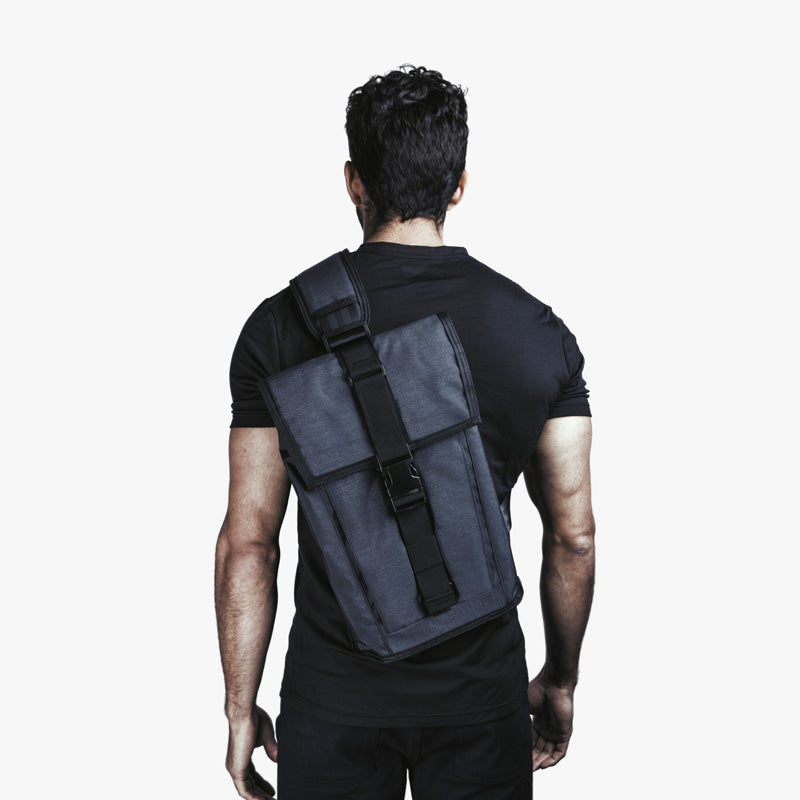 In sling configuration, the Spar can be worn on either the front or back of the body and has dual-access capability through top flap or side-zip entry points. The sling strap is equipped with a removable ventilated shoulder pad, and can be upgraded with our quick-adjust messenger shoulder strap assembly. The side-zip allows for access to the main compartment without doffing the pack. The Spar is Arkiv®-system compatible and can be combined with an R2/R6 or Radian pack to create a versatile travel system.