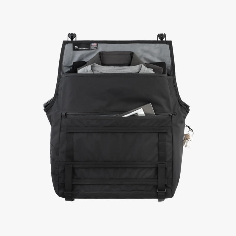 Like all Mission Workshop bags, The Khyte is built with two-layer waterproof construction to keep your gear safe and dry. For added versatility and customization, the front of the bag is equipped with three Arkiv® rails for attaching Arkiv accessories such as the Notch.
