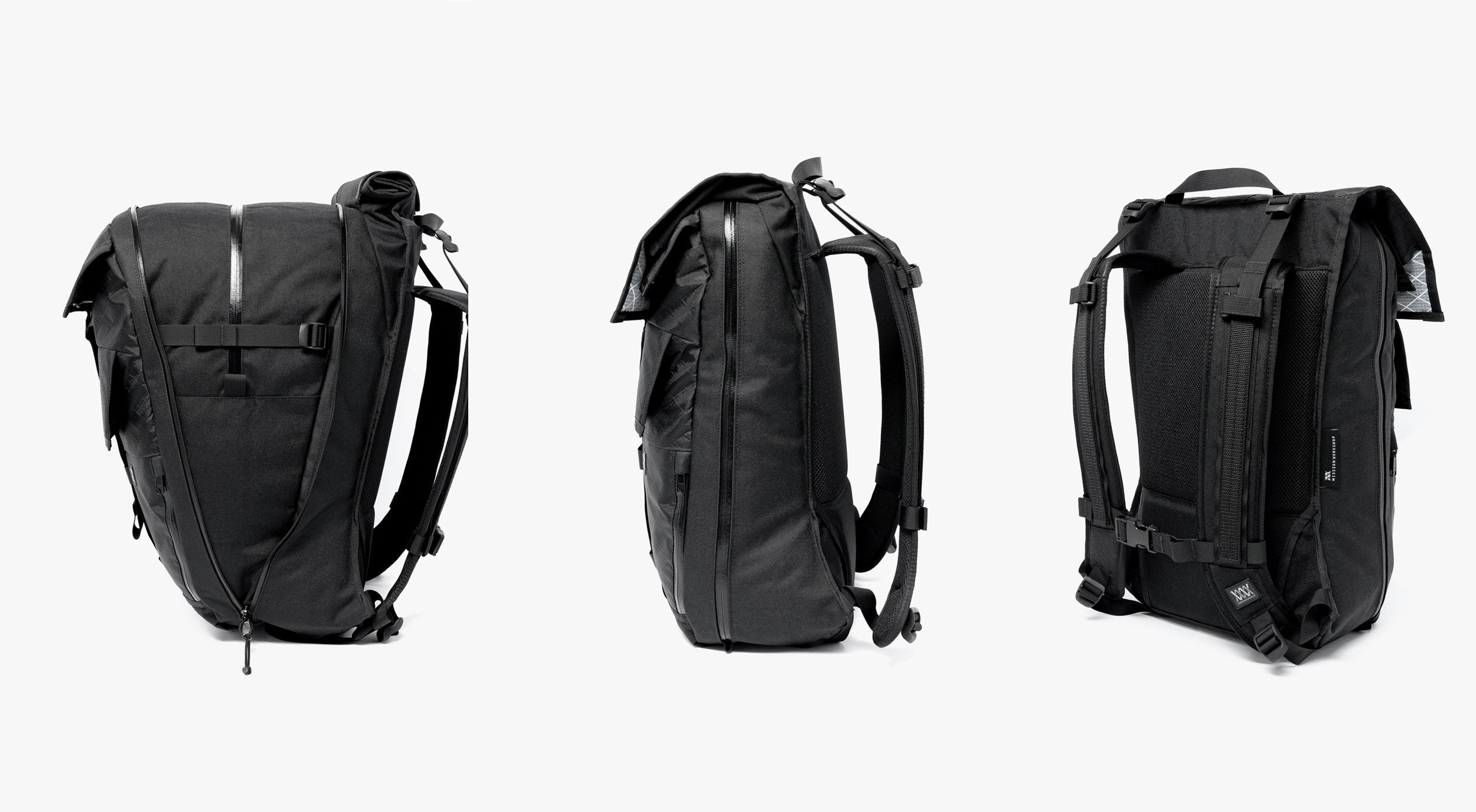 Organization is built in with six distinct storage zones: two large and two small external pockets, a rear roll-top stuff compartment, and the expandable central section. The pack also includes a Fidlock® magnetic closure, weather-resistant construction, YKK Aquaguard zippers, and dual Arkiv® rails on the shoulder straps for modular add-ons.